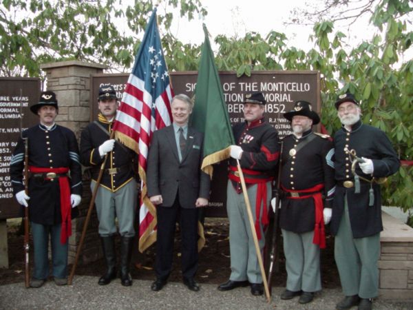 Secretary of State Sam Reeds poses with members of the Color Guard in front of the Monticello Convention marker.