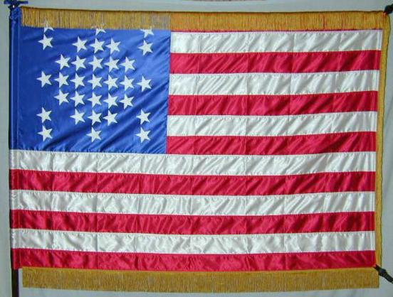 The U.S. flag used was the flag of that period, with 33 stars. A close-up of this flag was provided by Jeff Henningfield.