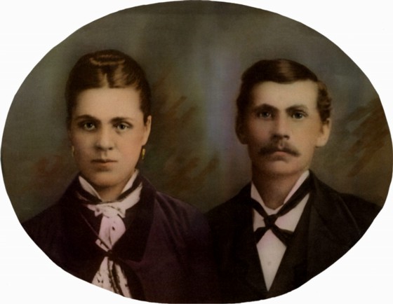 This is Solomon C. Strong (who appears in "Fields of Flowers and Forests of Firs" remembered as "Saul" - doubtless phonetic for "Sol.") - and his wife Amelia [Thiel]. Married on the 7th of October, 1879 - (Cowlitz Co, WA).