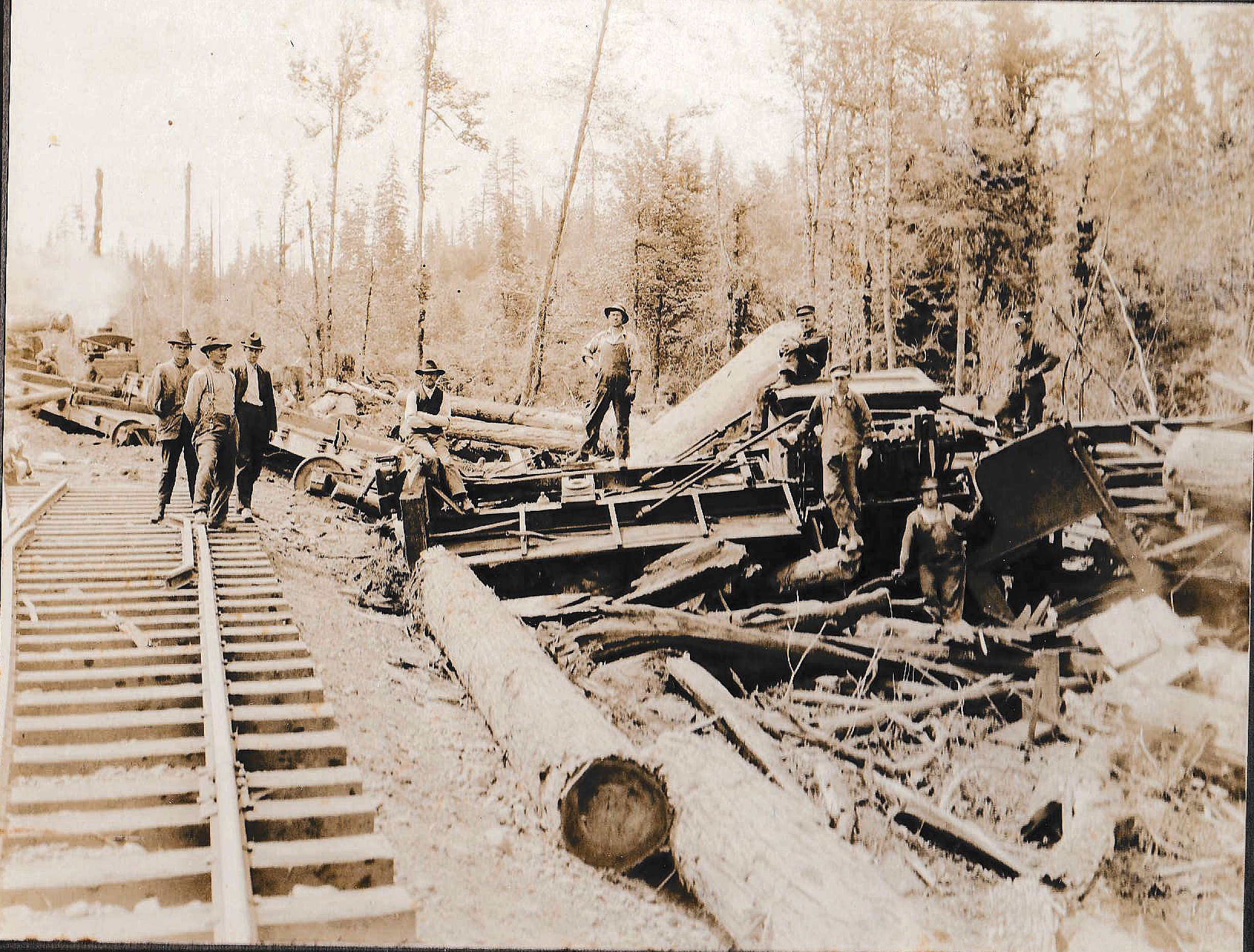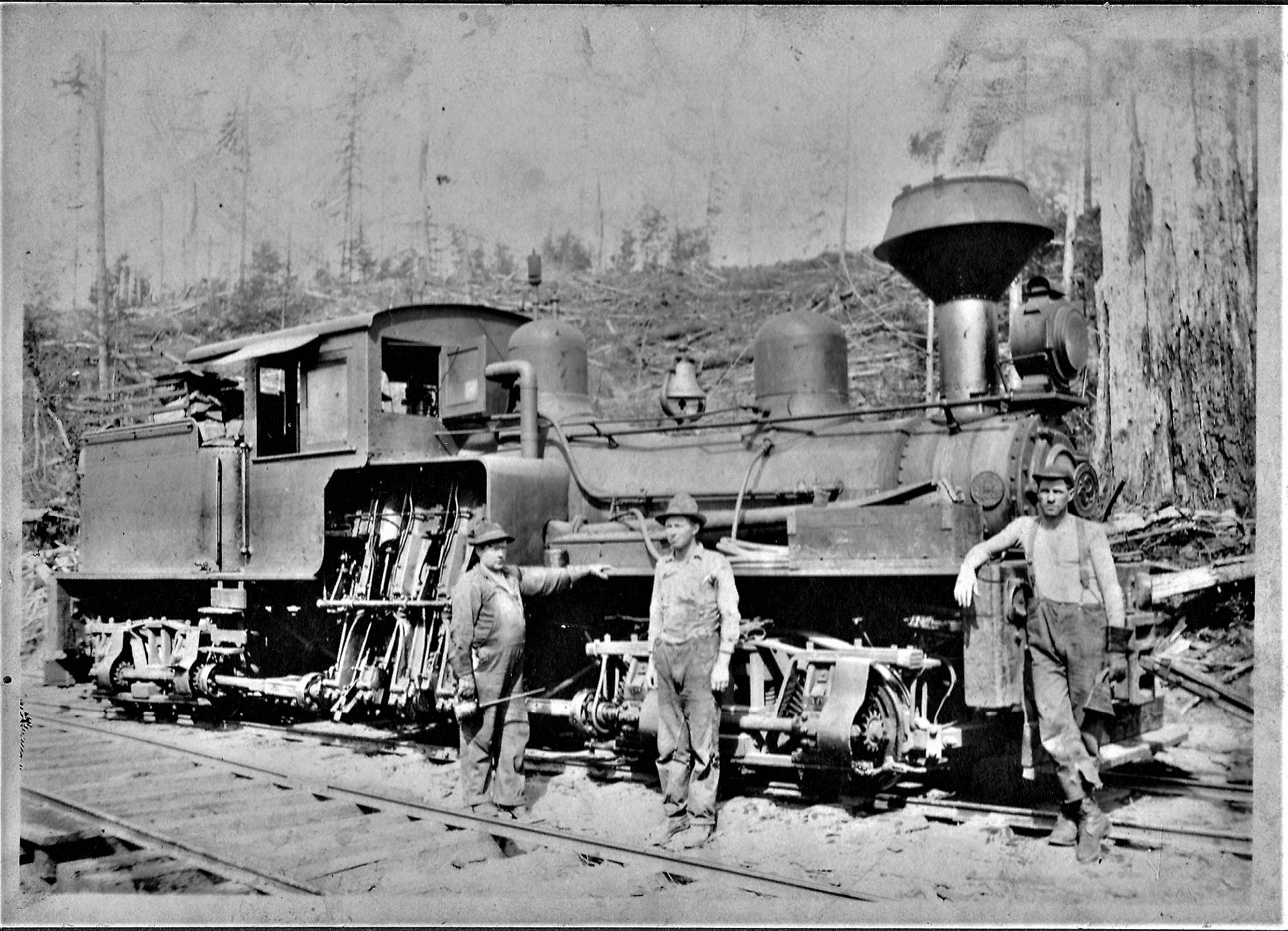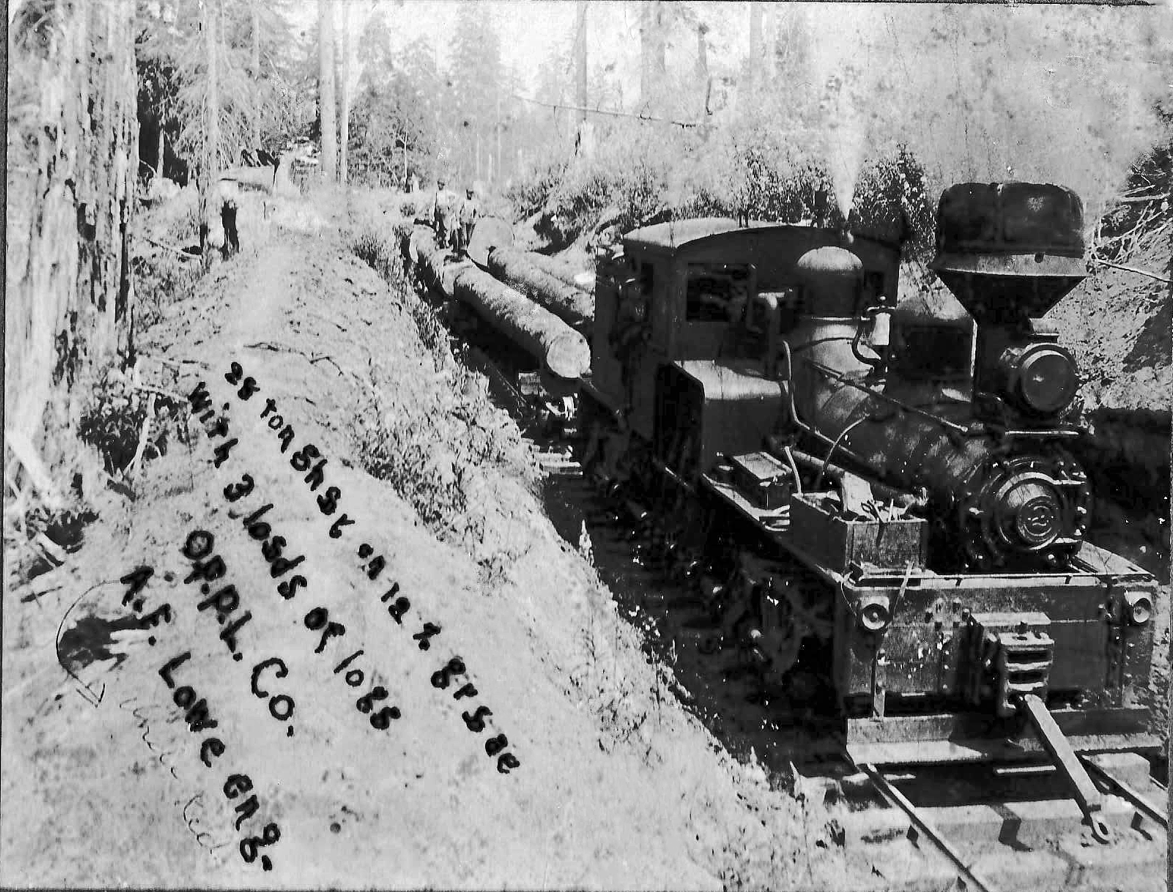 My great grandfather was a train engineer for the Oak Point Piling and Lumber Co. His name was Archelaus F. Low, he was commonly known as Keel. I have several photos of him, some crew members, the Shay locomotive he was responsible for, him at the controls of a three car load of logs, a steam donkey and crew, and a train wreck. I also have a photo that I have yet to find of the rigging crew with the cooks rail car in the background with many members of my family identified. Keel is amongst the crowd.