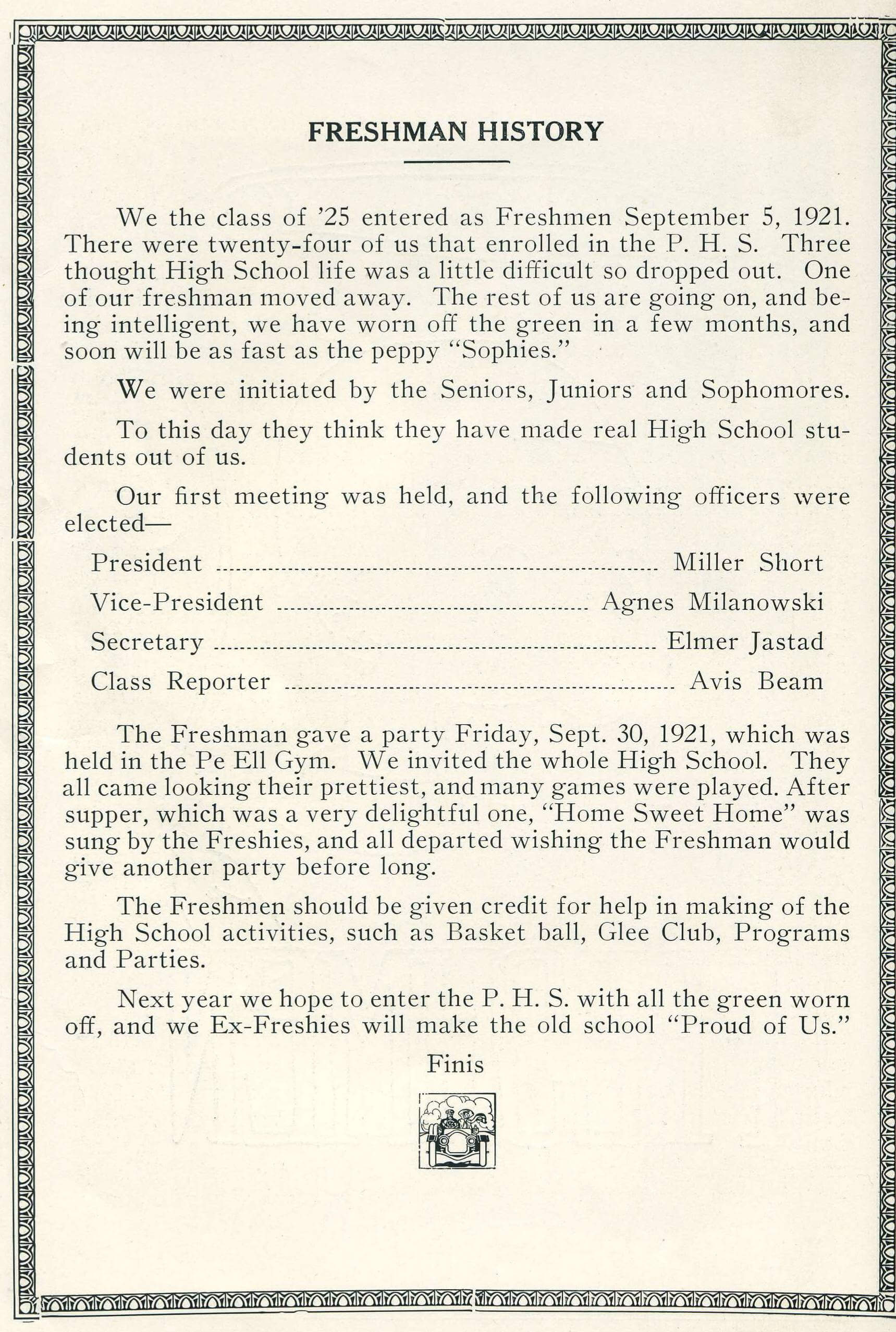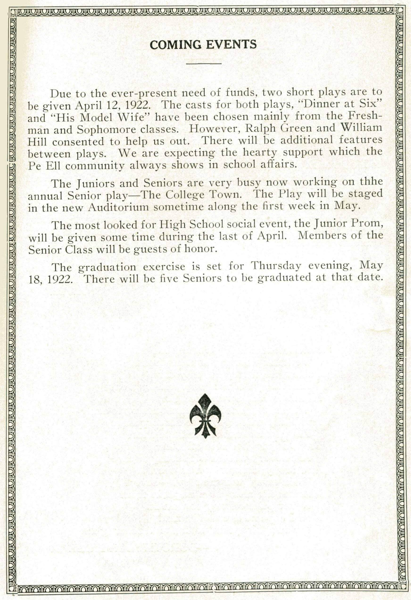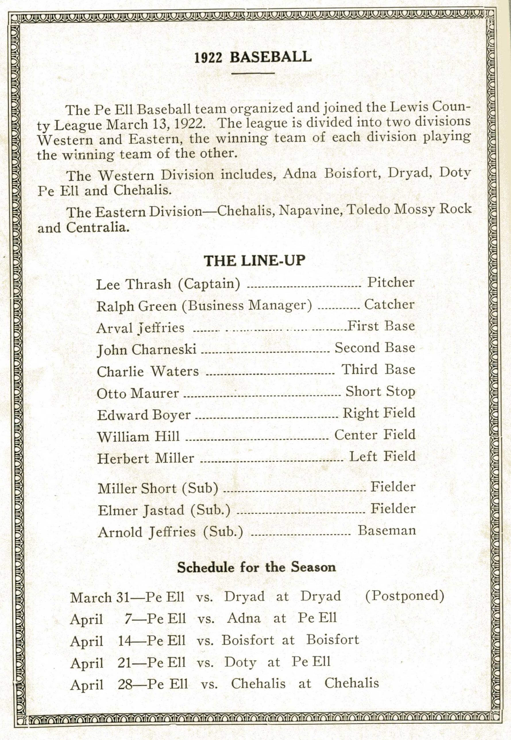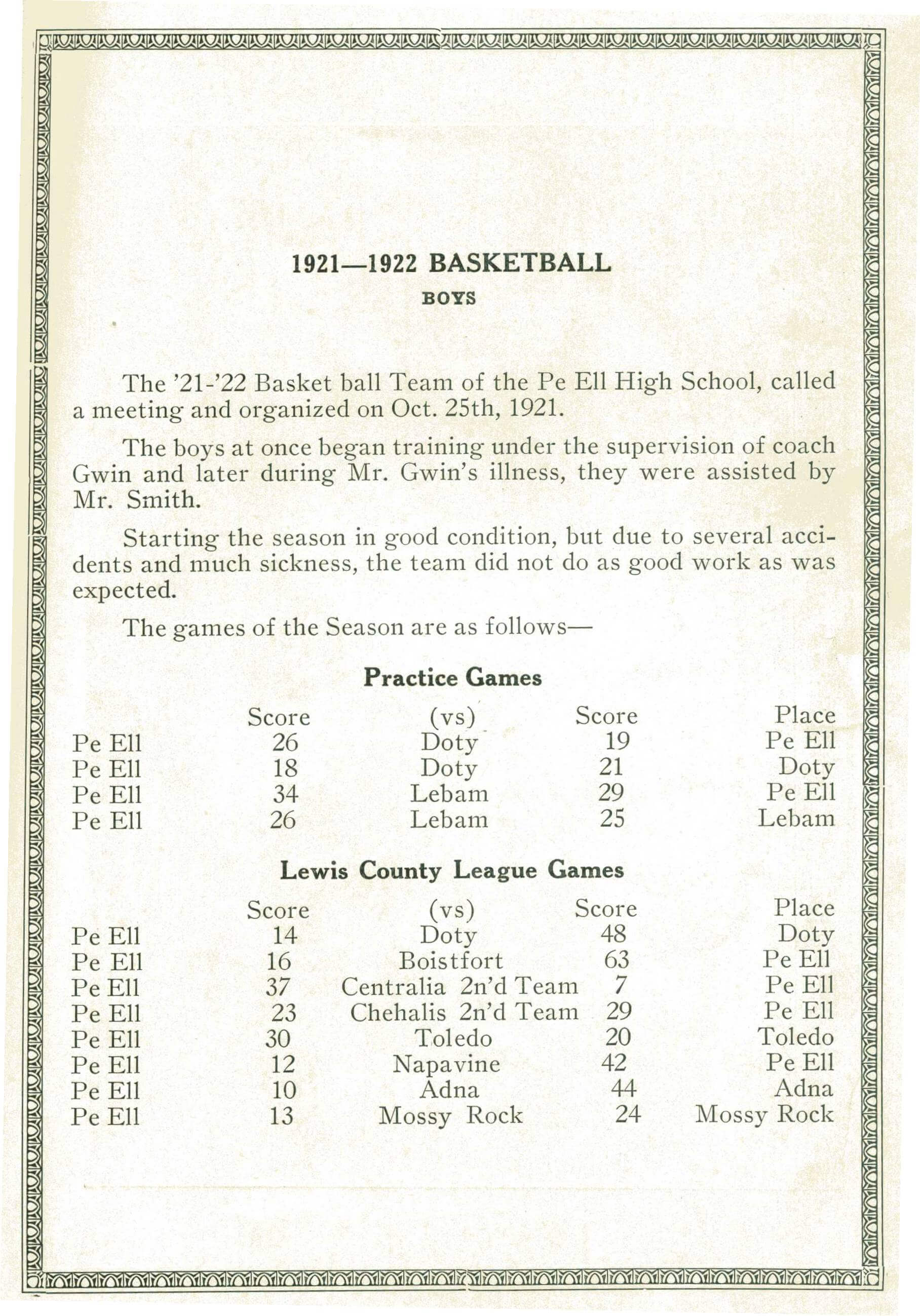 Heather has scanned and submitted the entire 1922 yearbook for Pe Ell High School. Each page is linked below. A transcription is forthcoming.
