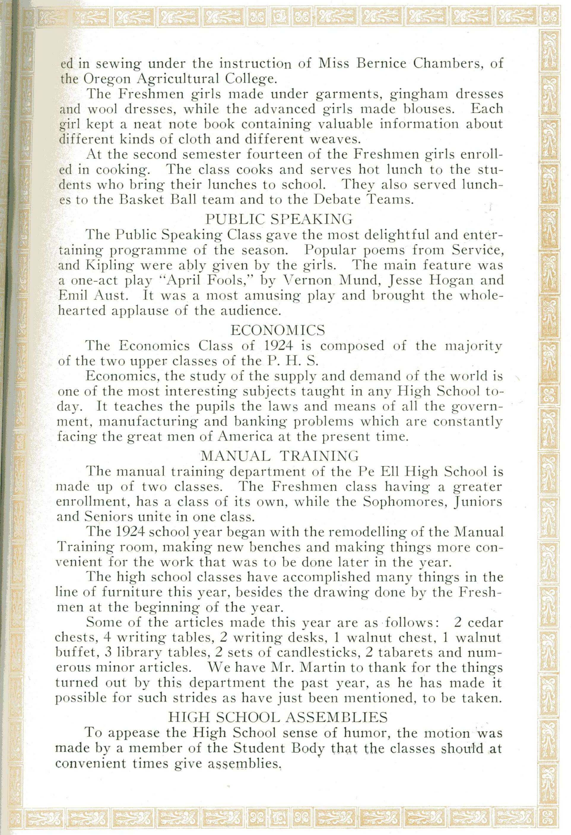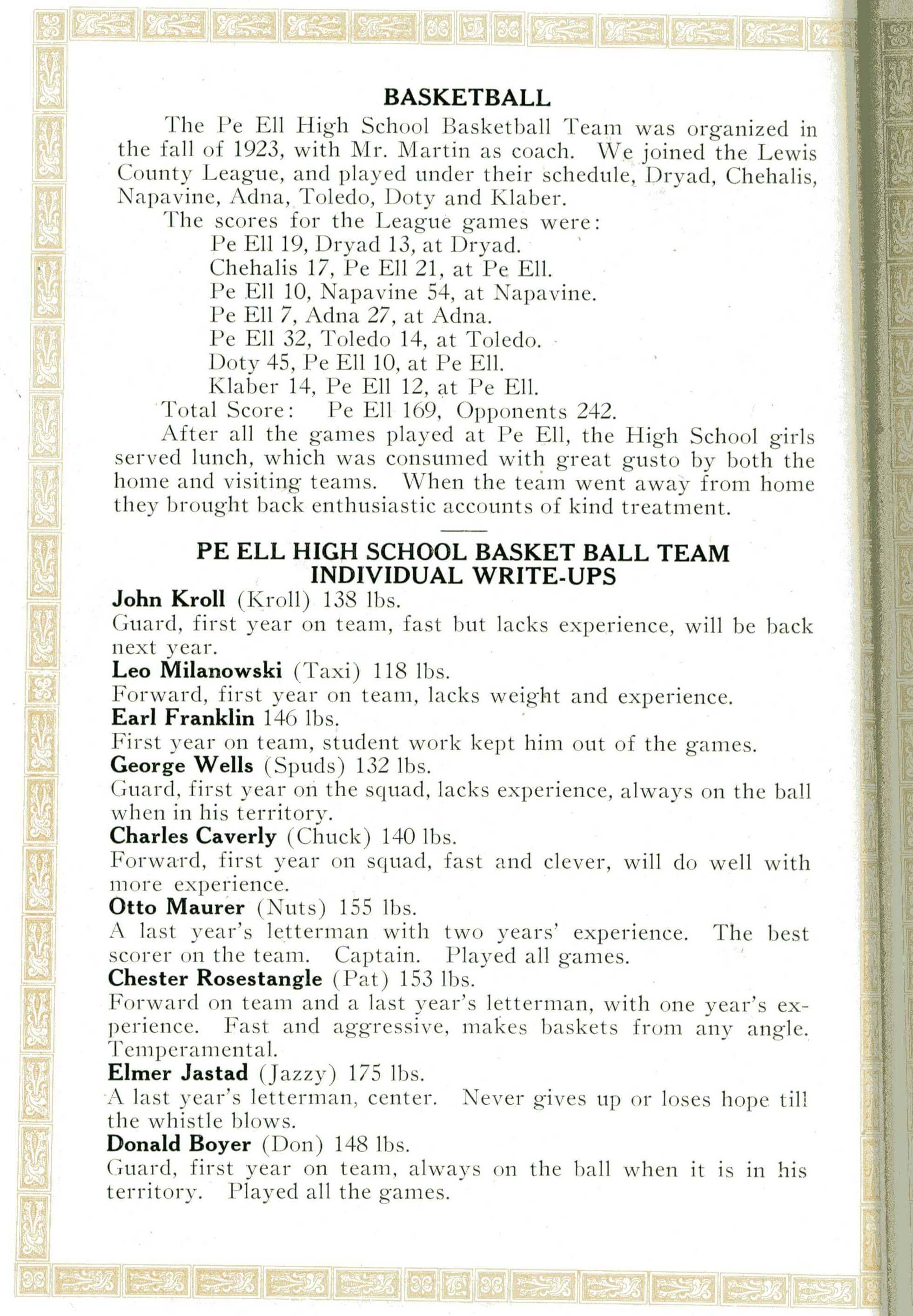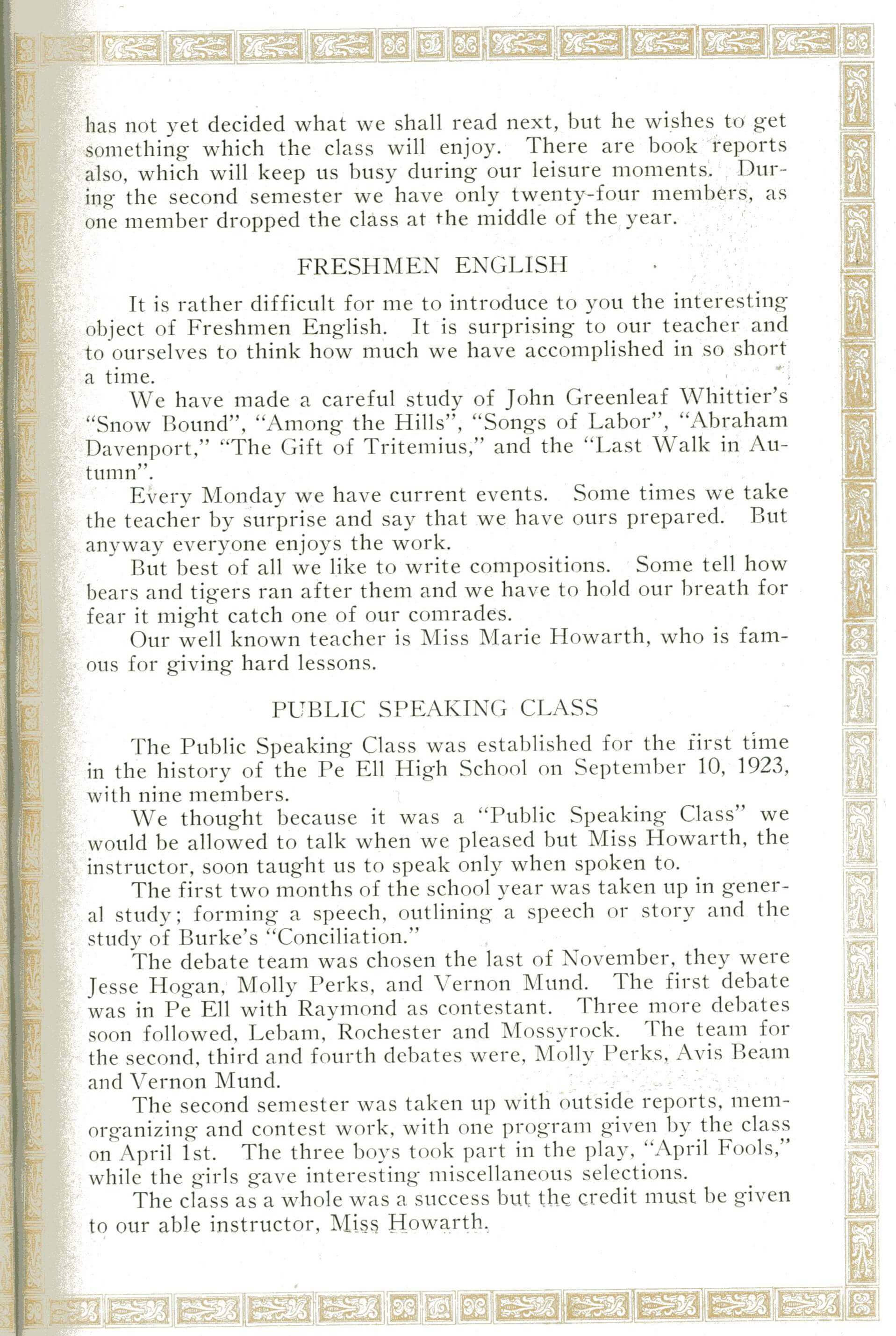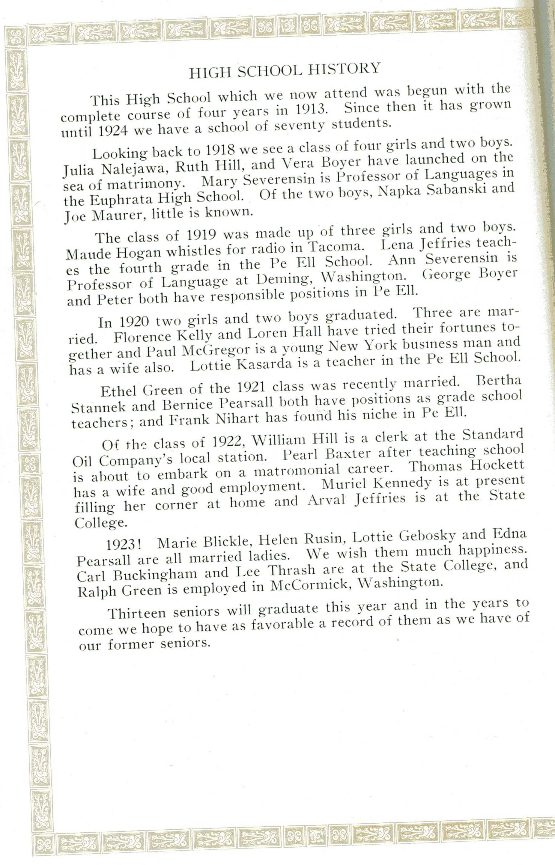 Heather has scanned and submitted the entire 1924 yearbook for Pe Ell High School. Each page is linked below. A transcription is forthcoming.
