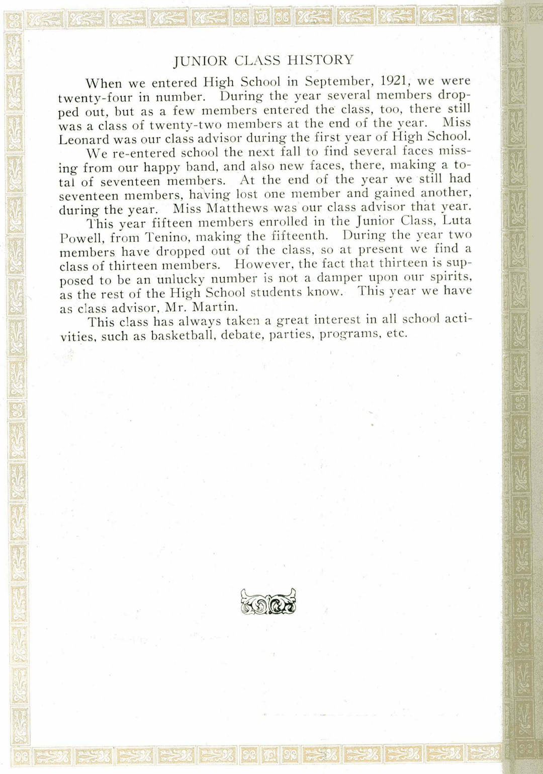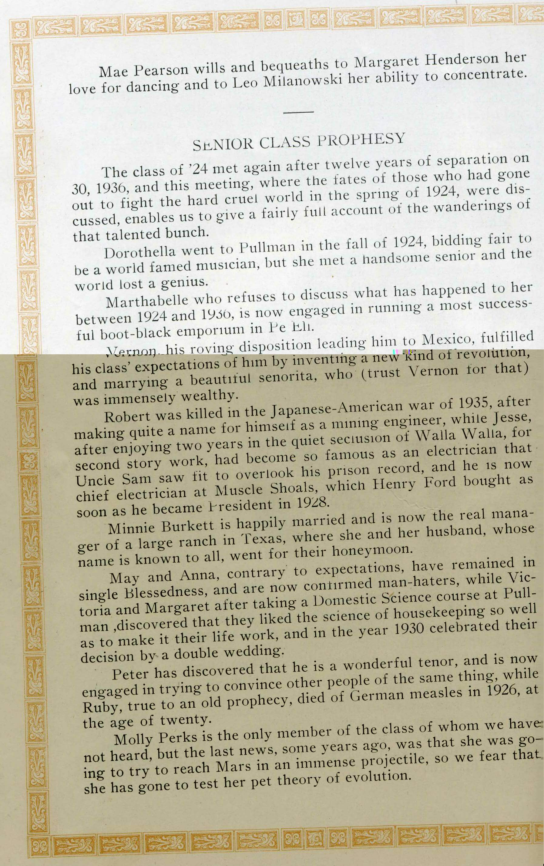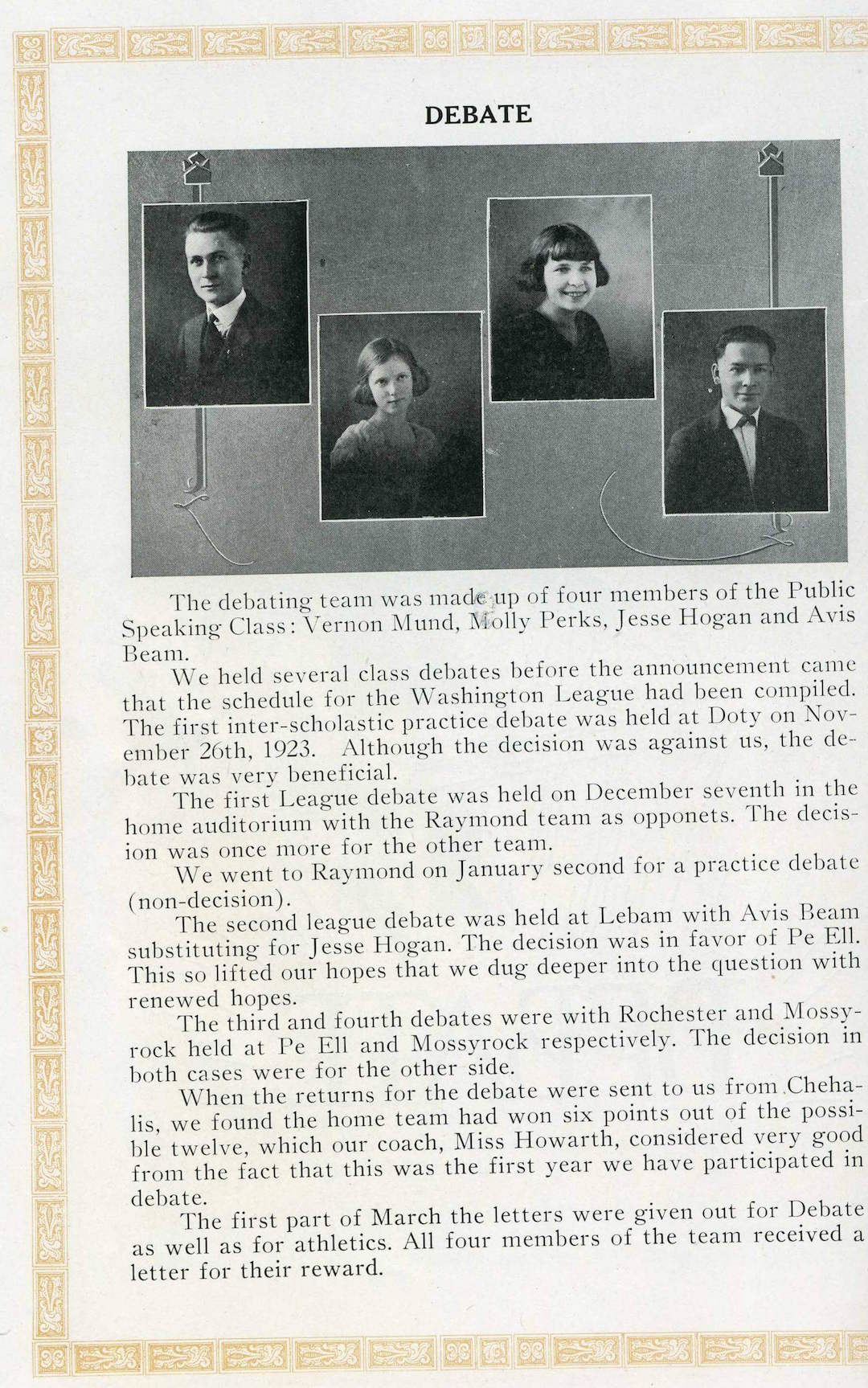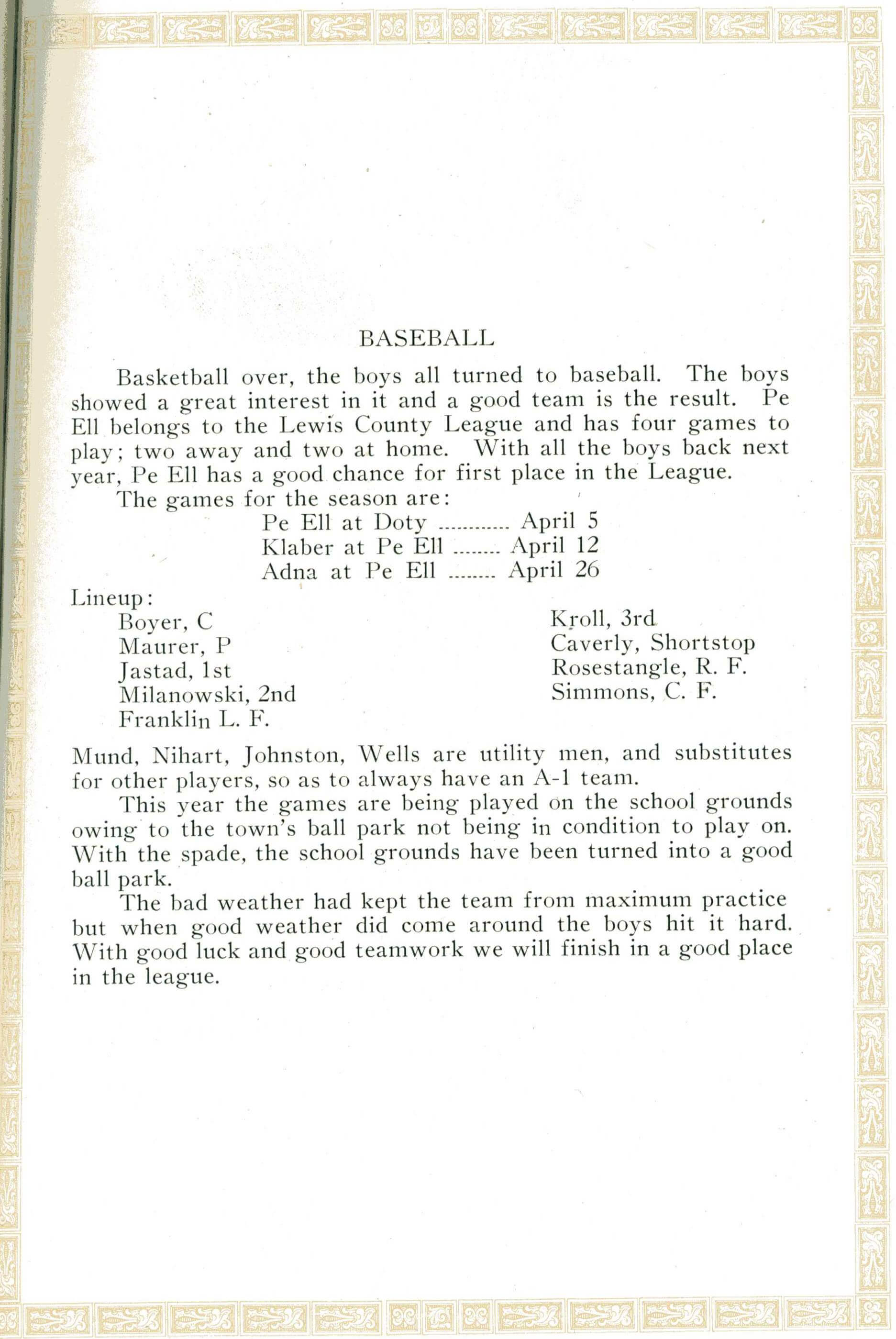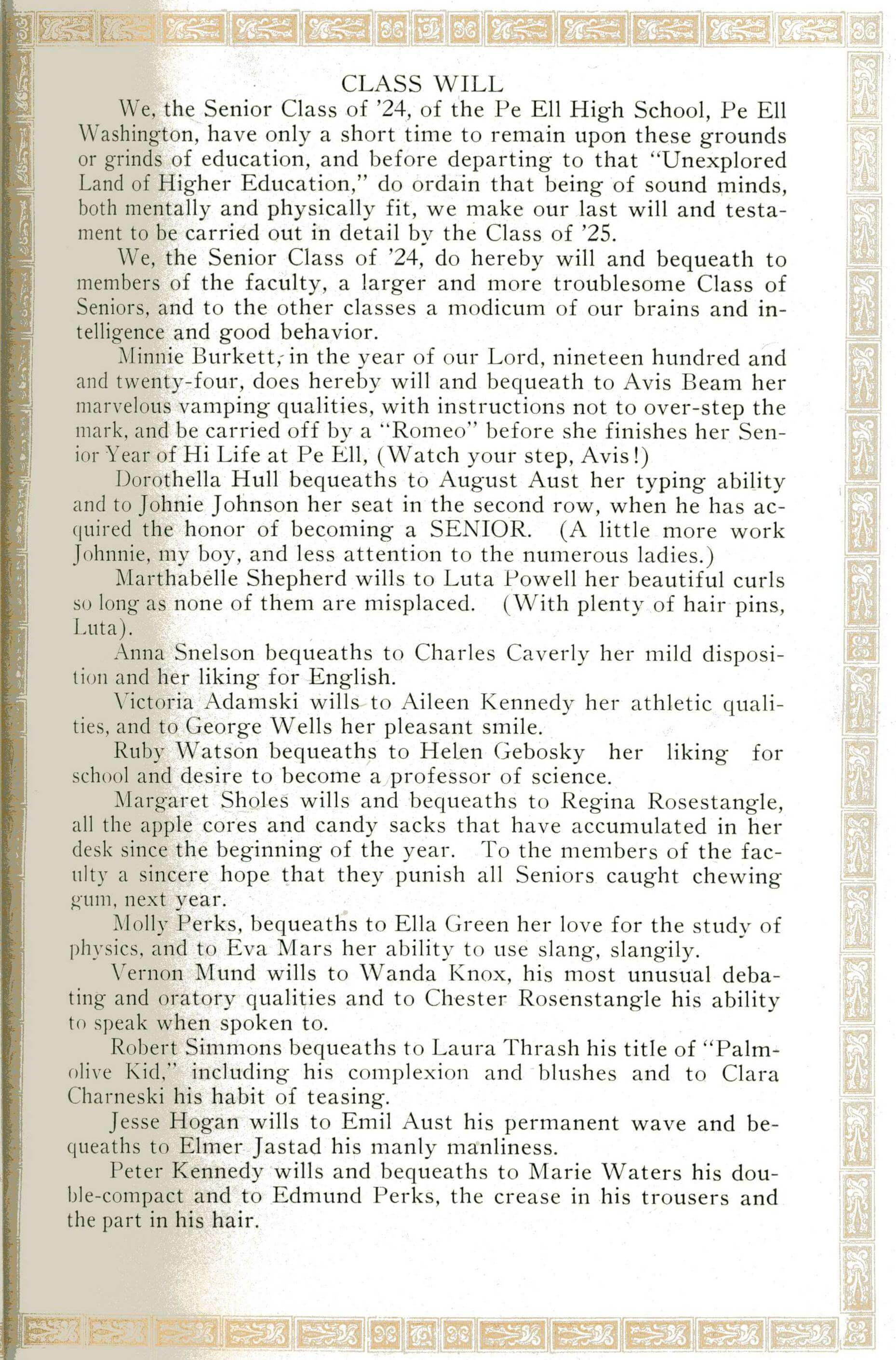 Heather has scanned and submitted the entire 1924 yearbook for Pe Ell High School. Each page is linked below. A transcription is forthcoming.