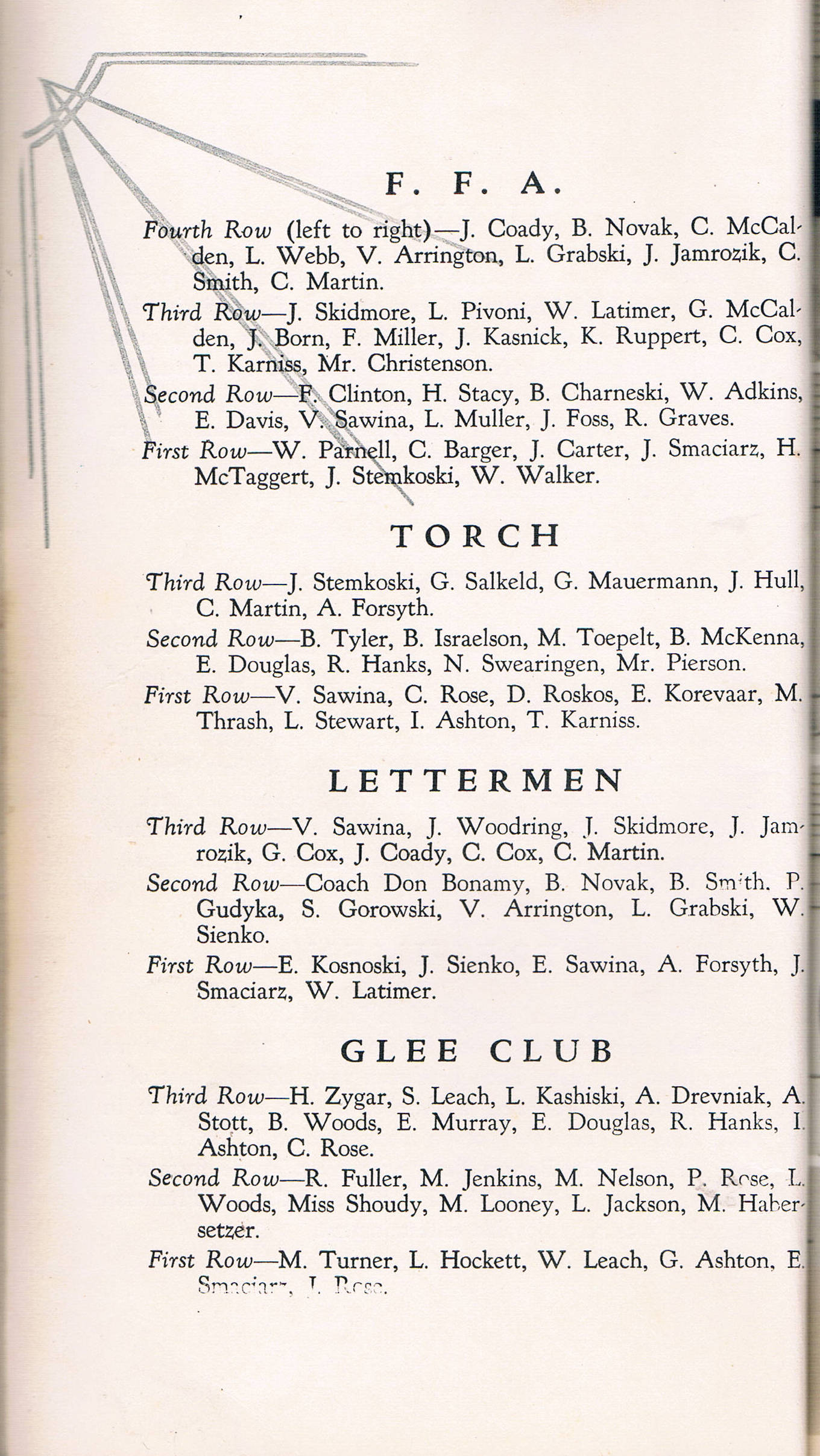 - F.F.A. - Torch Honor - Lettermen - Glee Club