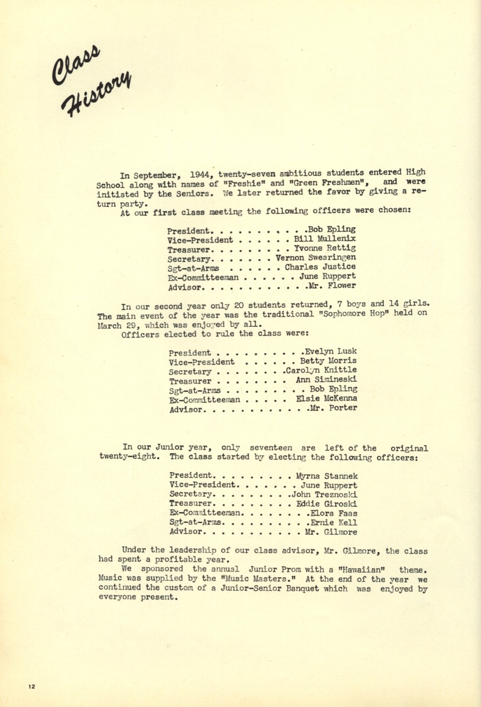 | 12 | Senior Class History |