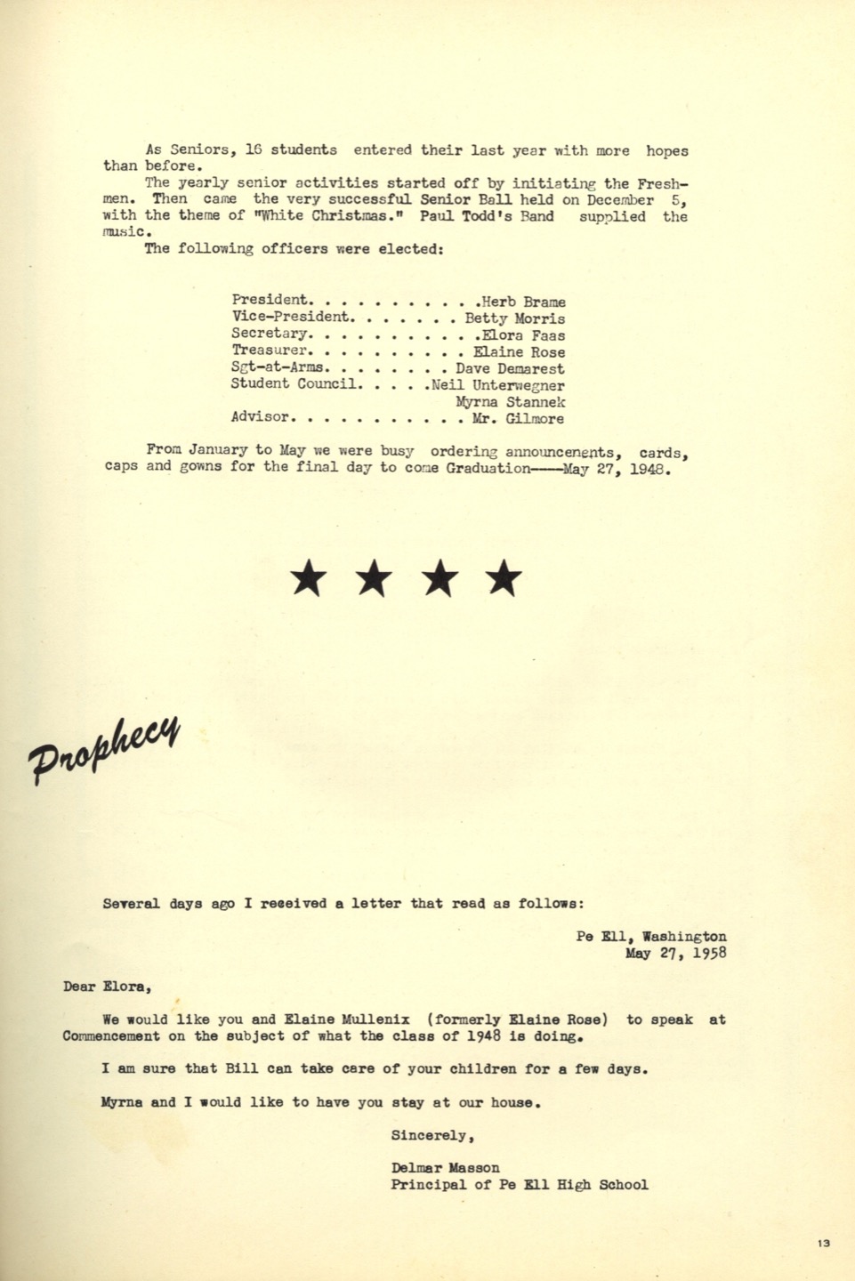 | 13 | Senior Class History (cont'd) and Prophecy |