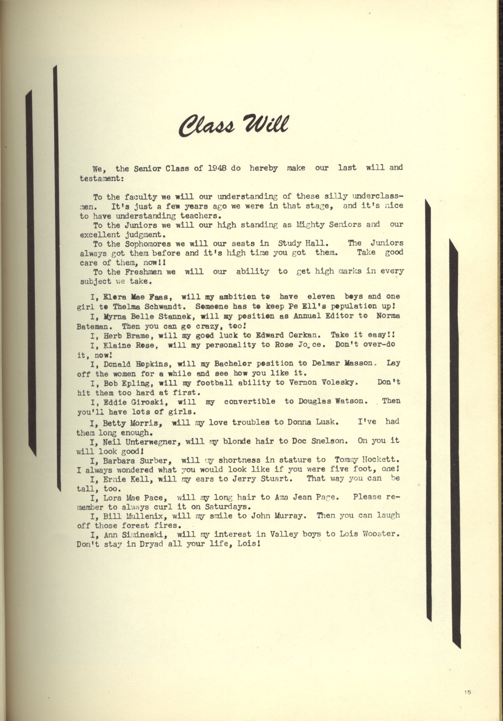 | 15 | Class Will |