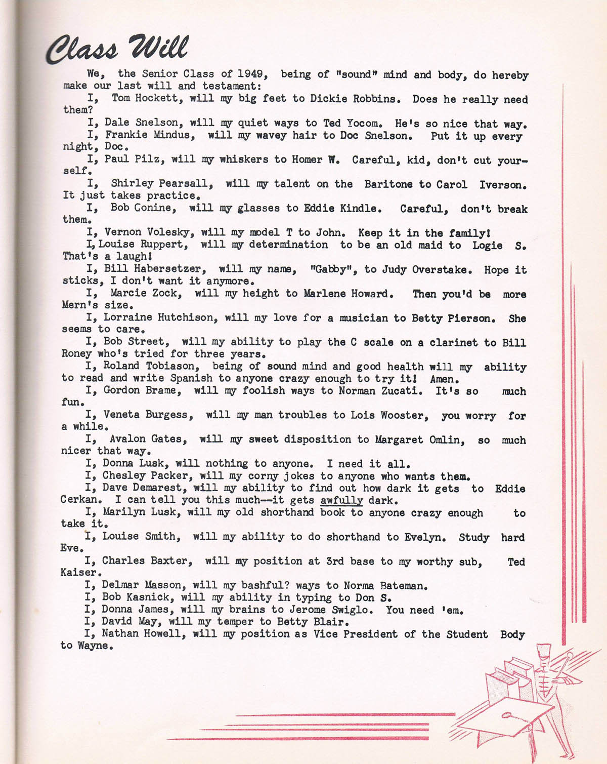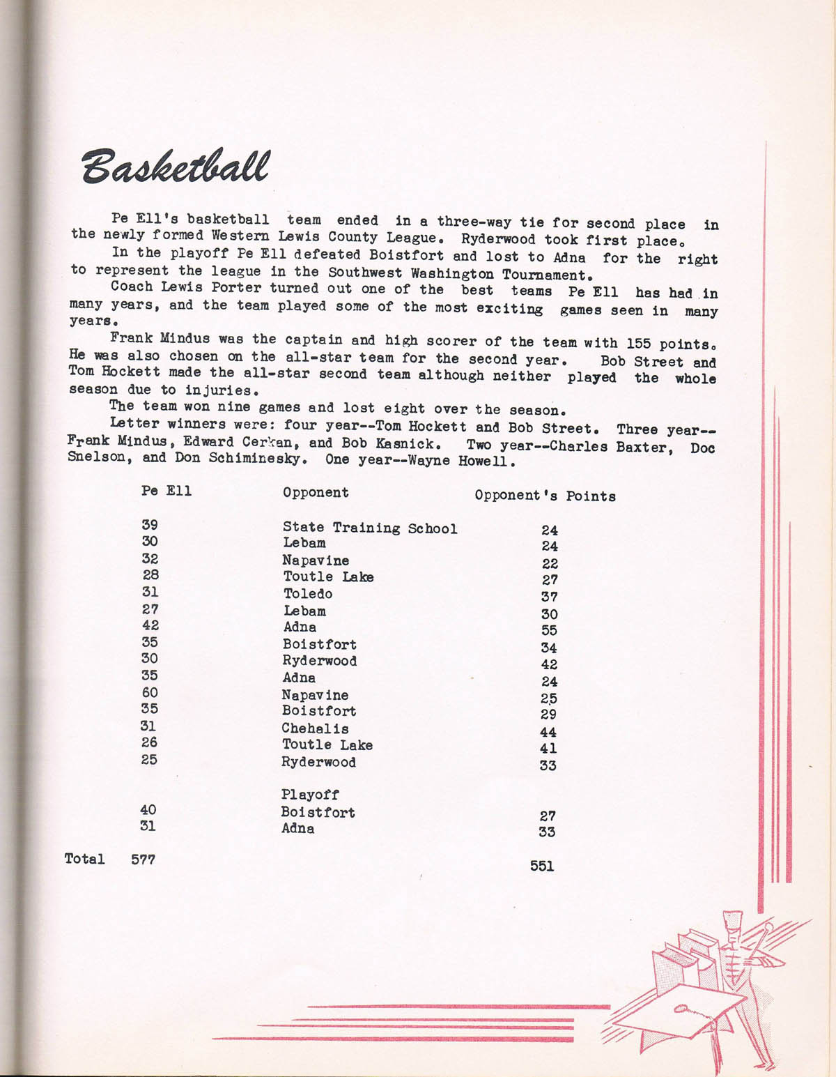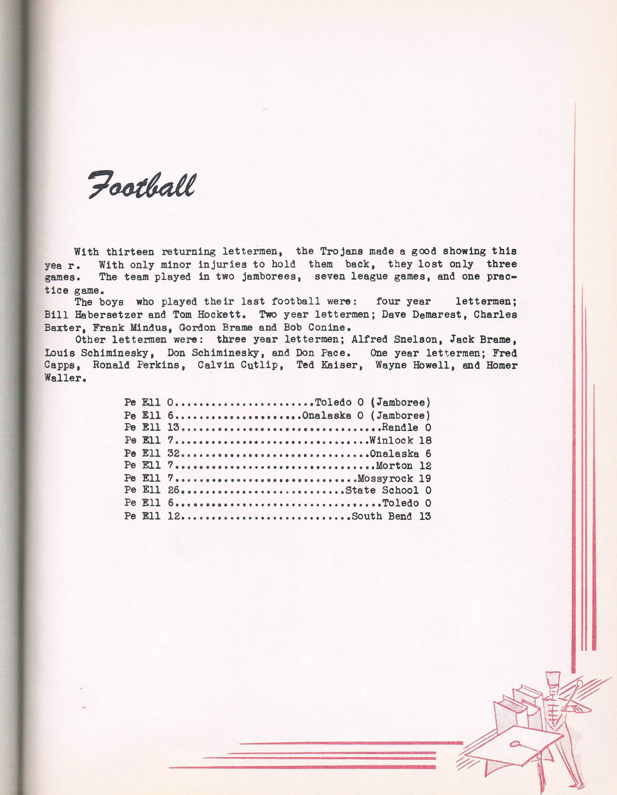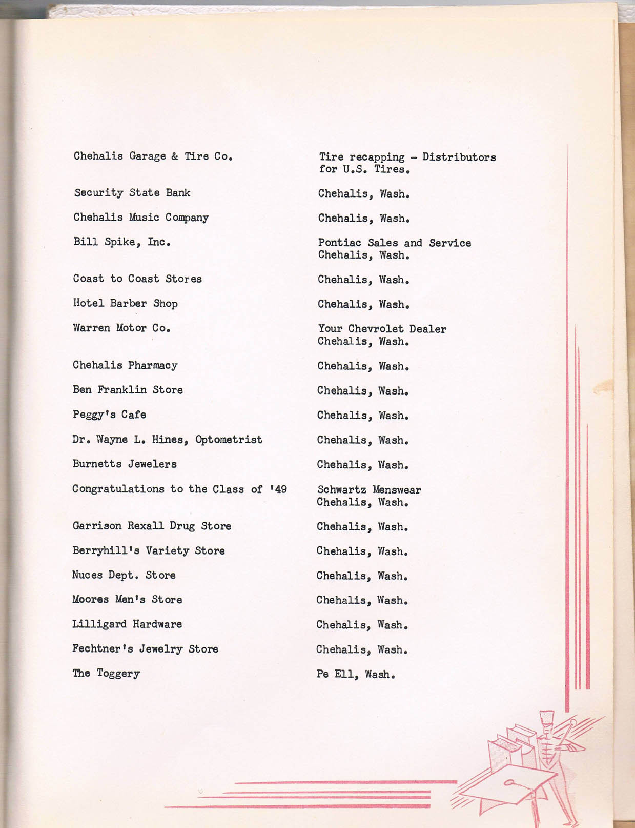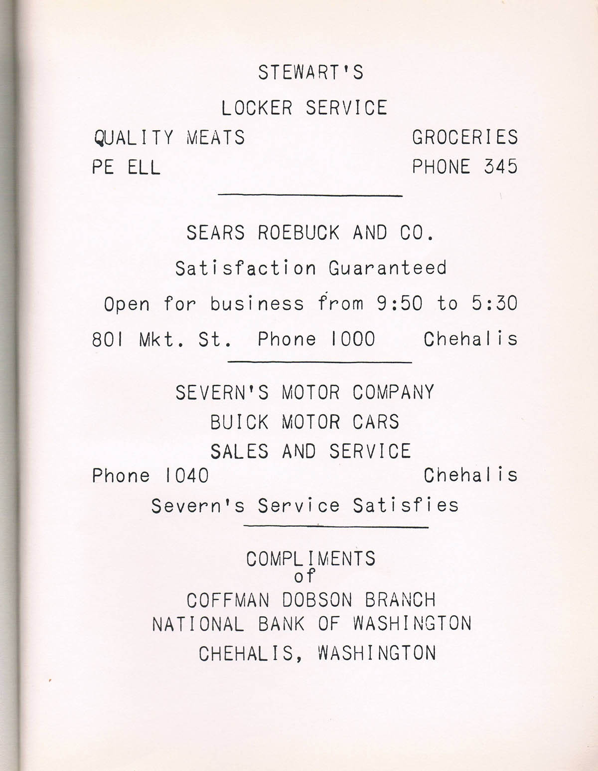 Ches Packer contributed these scanned pages from the entire 1949 yearbook for Pe Ell High School (Ches was a senior at Pe Ell in 1949). Each page is linked below. An Every-name Index is also available.