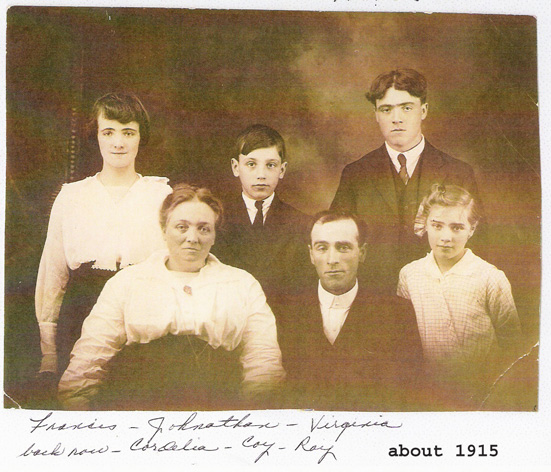 - Brown Family, about 1915 - Jonathan and Martha Frances Brown with their children: Roy, Cordelia, Virginia, and Coy