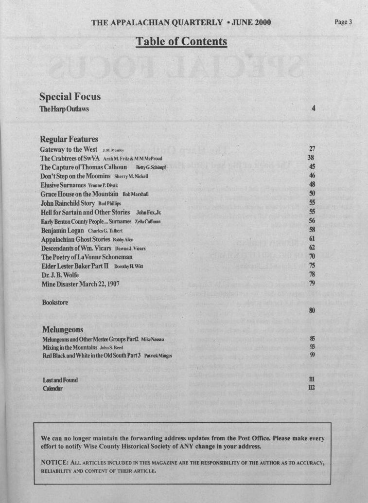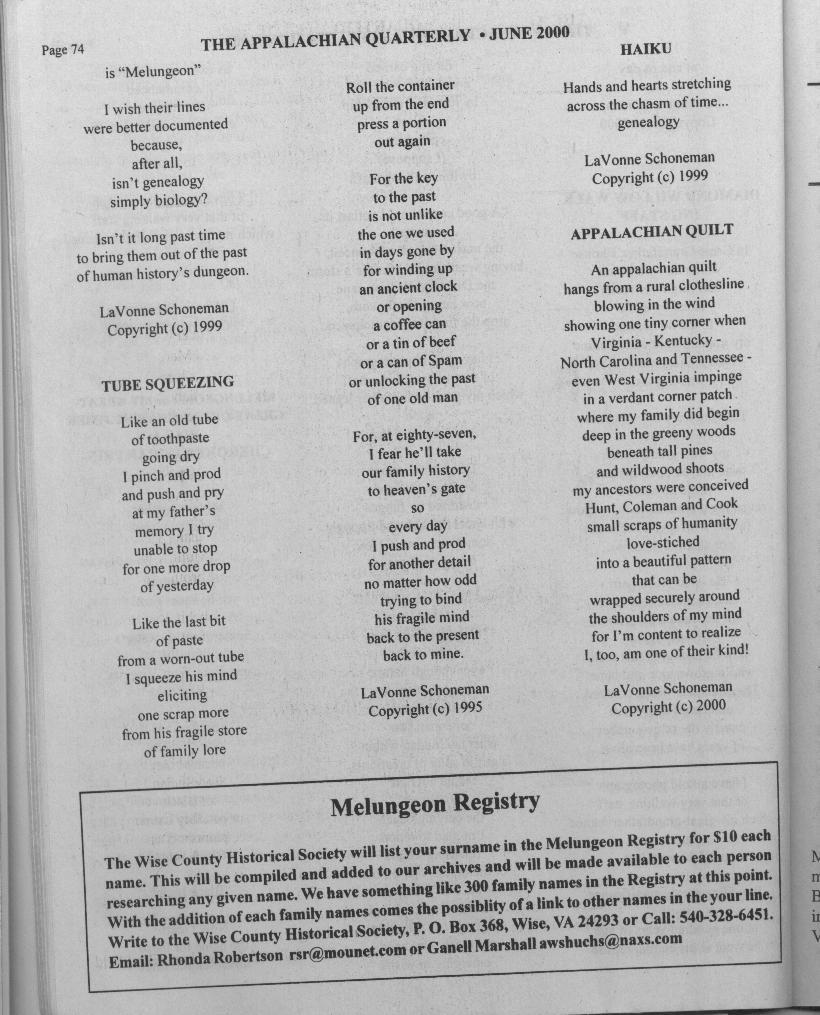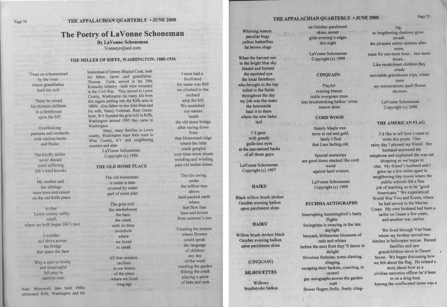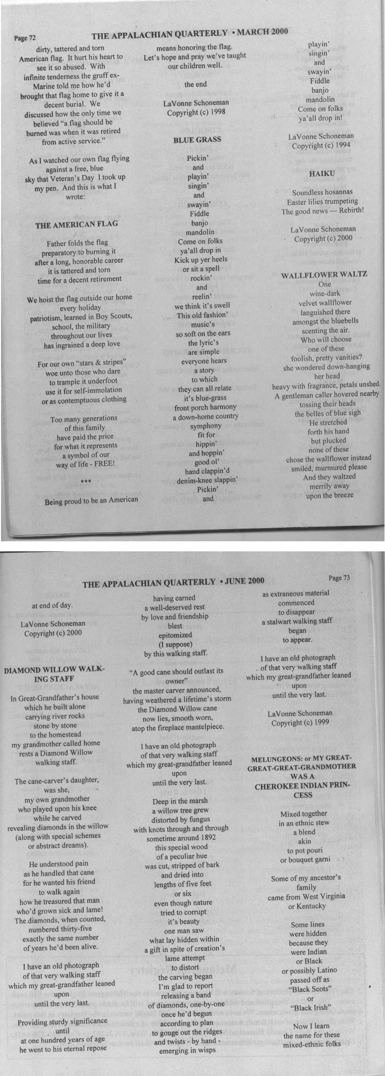 These poems were published in "The Appalachian Quarterly", June 2000: